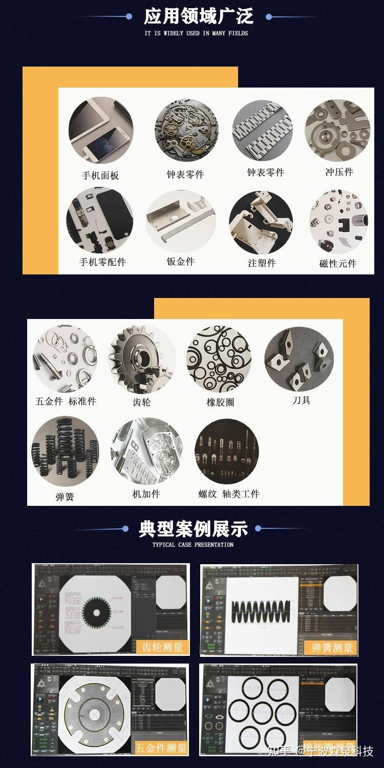 广泛应用于机械、电子、模具、五金、橡胶、磁性材料、精密冲压、接插件、端子、手机、电路板、医疗器械、钟表等尺寸较小的产品及零部件的批量快速测量。采用双远心高分辨率光学镜头,结合高精度图像分析算法,并融入一键闪测原理。CNC模式下,只需把工件放置载物台,仪器即可根据工件的形状自动定位测量对象、匹配模板、测量评价、报表生成,真正实现一键式快速精准测量。传统测量仪器如投影仪、工具显微镜、轮廓仪、游标卡尺、千分尺等,在测量时面临诸多问题,如:测量对象的定位原点定位费时、测量操作时间长、不同测量人员导致测量结果不同、数据统计管理繁杂等。